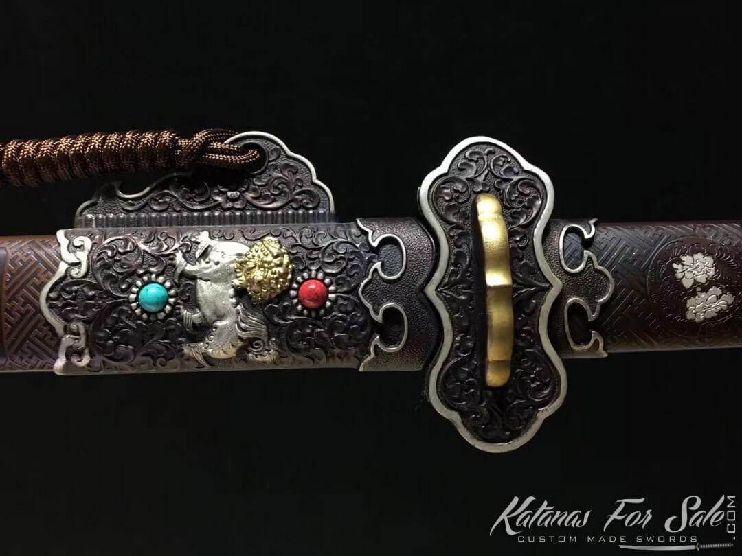 Fuchi (Handle Collar) and Kashira (Handle Buttcap): Gold Metal Alloy