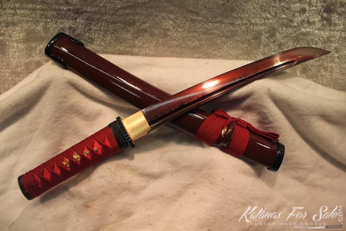 Tanto Blade T10 Clay Tempered Steel with Black Semi Red Ray Skin Saya