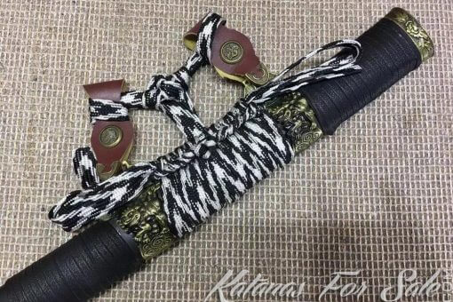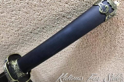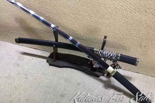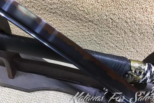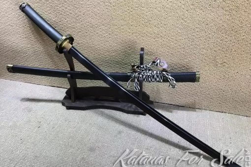 Black Tachi Sword T10 Clay Tempered Steel with Ebony Wood Saya