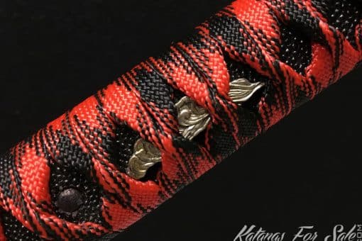Tsuka (Handle): black and red rayon silk wrap with black ray skin Samegawa