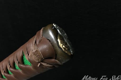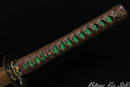Tsuka (Handle): Brown Leather Ito Wrap with Green Samegawa