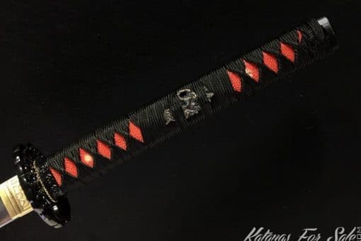 Tsuka (Handle): Black Rayon Silk Ito Wrap with Red Samegawa