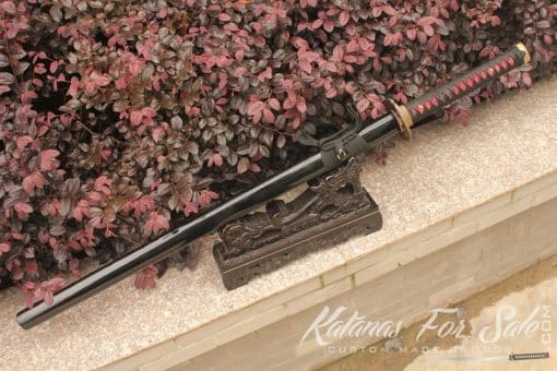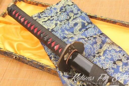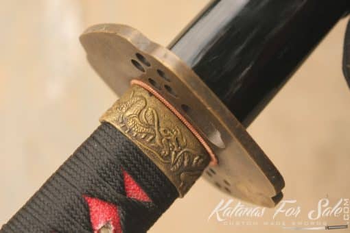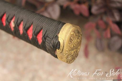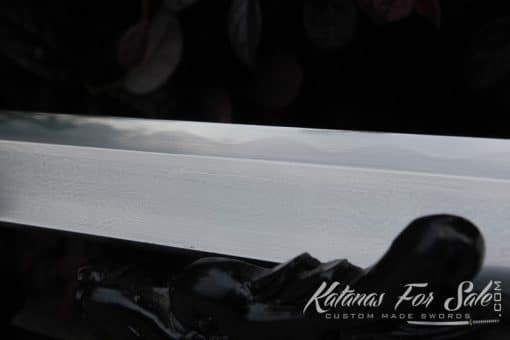 The blade of the sword has been handmade from T10 steel. It has been folded 13 times creating 8192 layers. We can see the clear grain pattern. The blade also exhibits one of the most appealing Hamon temper lines that is authentic and distinct as a result of traditional Clay Tempering Processes.