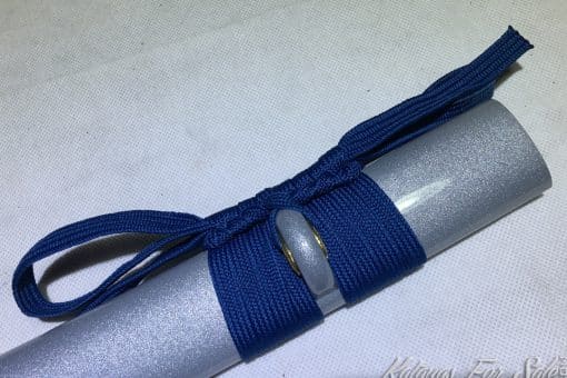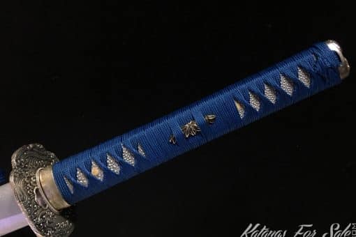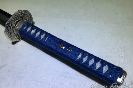 Tsuka (Handle): Blue Rayon Silk Ito Wrap with Silver Samegawa